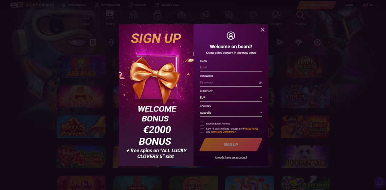 Creating an account at Ricky Casino is an easy process, but beginners are still better off following the special instructions. These are exactly what the experts have created for the convenience of users.