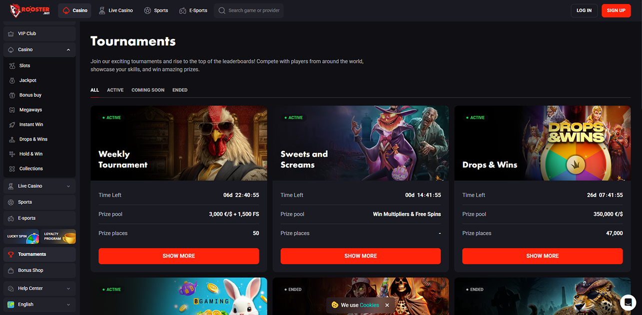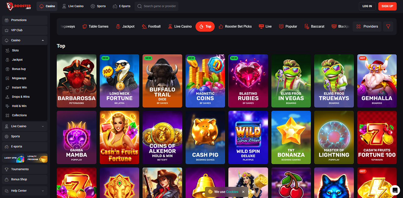 Rooster Bet has an enormous collection of over 8,000 casino games across multiple categories. Aussie players can gamble pokies, instant games, live dealer games, table games, and jackpot pokies, and all provided by licensed developers. Many of these games come with features like Hold & Win, Bonus Buy, and Progressive Jackpots.