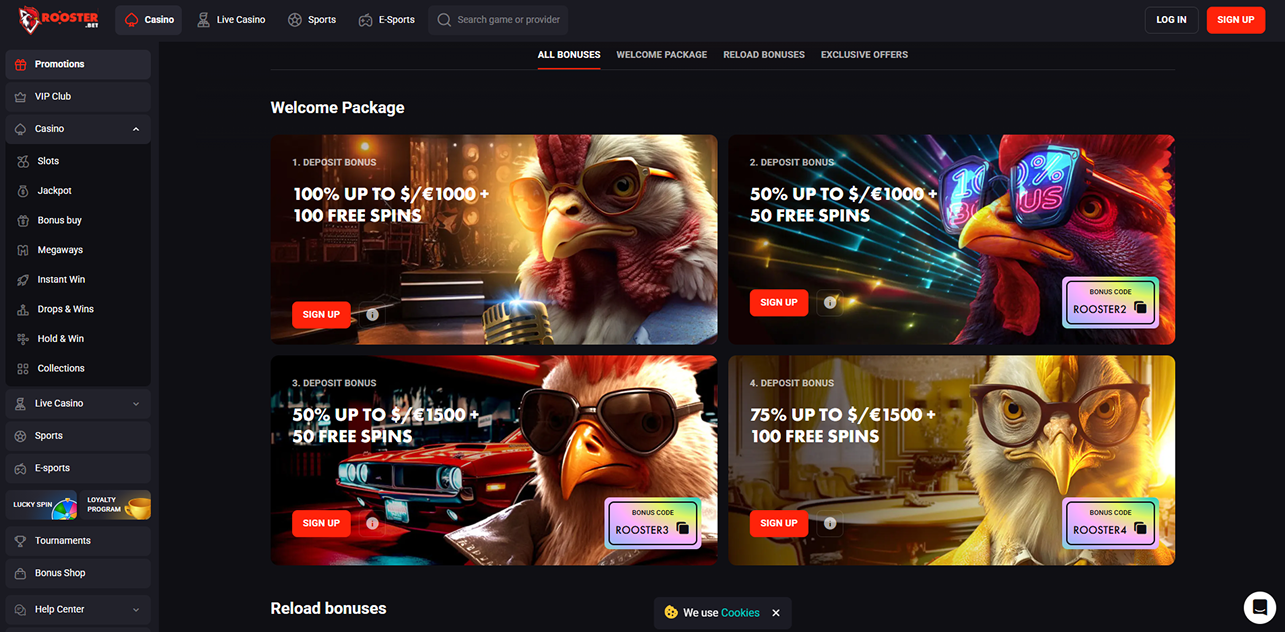With over 8,000 games available (including pokies, table games, jackpots, and live dealer games) Rooster Bet has something to offer for every type of player, believe us. The casino also supports sports betting, which gives users even more ways to play. New members can benefit from a generous welcome package while returning players will find regular reload bonuses and a loyalty store full of valuable rewards.